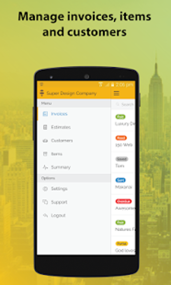 مع فاتورة بي، يمكنك استيراد تفاصيل العملاء من قائمة الاتصال، وإجراء مكالمة أو إرسال بريد إلكتروني مباشرة من قائمة العملاء، وتحويل التقديرات إلى فواتير. يوفر التطبيق دعمًا نشطًا ويُرسل تذكيرات بالمدفوعات المتأخرة بنقرة بسيطة.